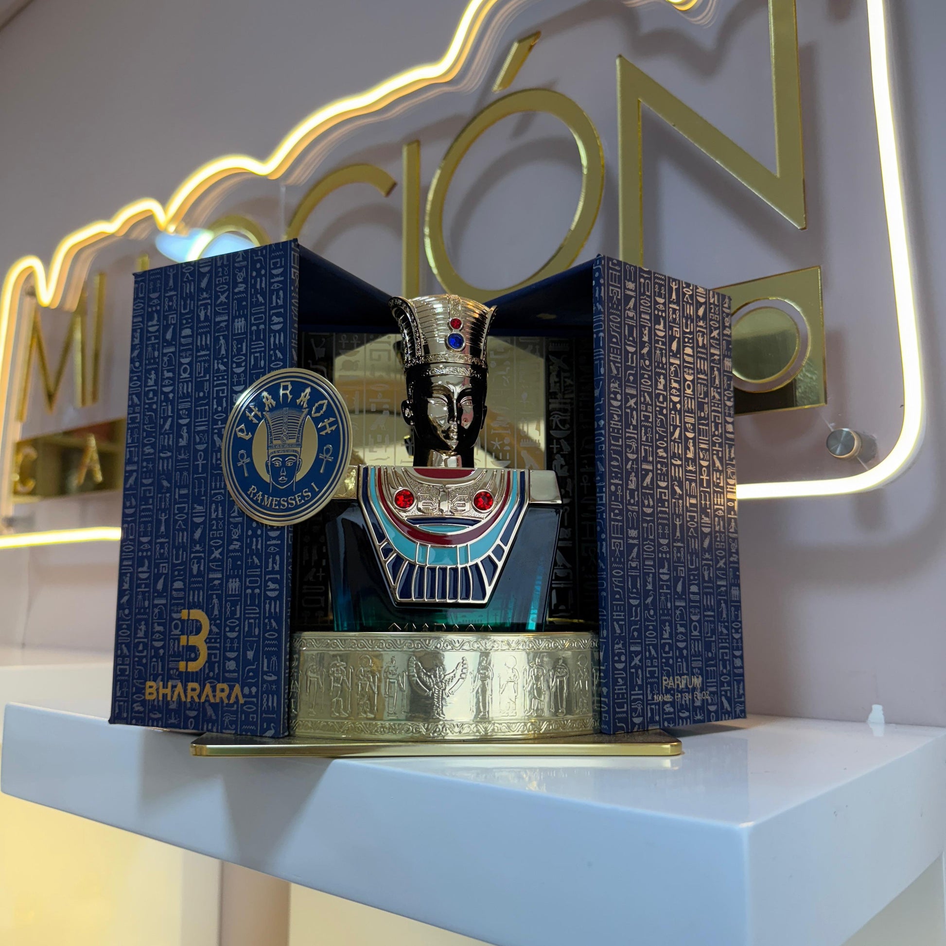 Bharara Ramessesi es una fragancia unisex de estilo árabe, intensa y sofisticada, que combina especias exóticas, maderas orientales y resinas cálidas. Diseñada para quienes buscan una esencia única, duradera y con carácter imperial. Su aroma te envuelve con elegancia y misterio, ideal para climas frescos y noches especiales.